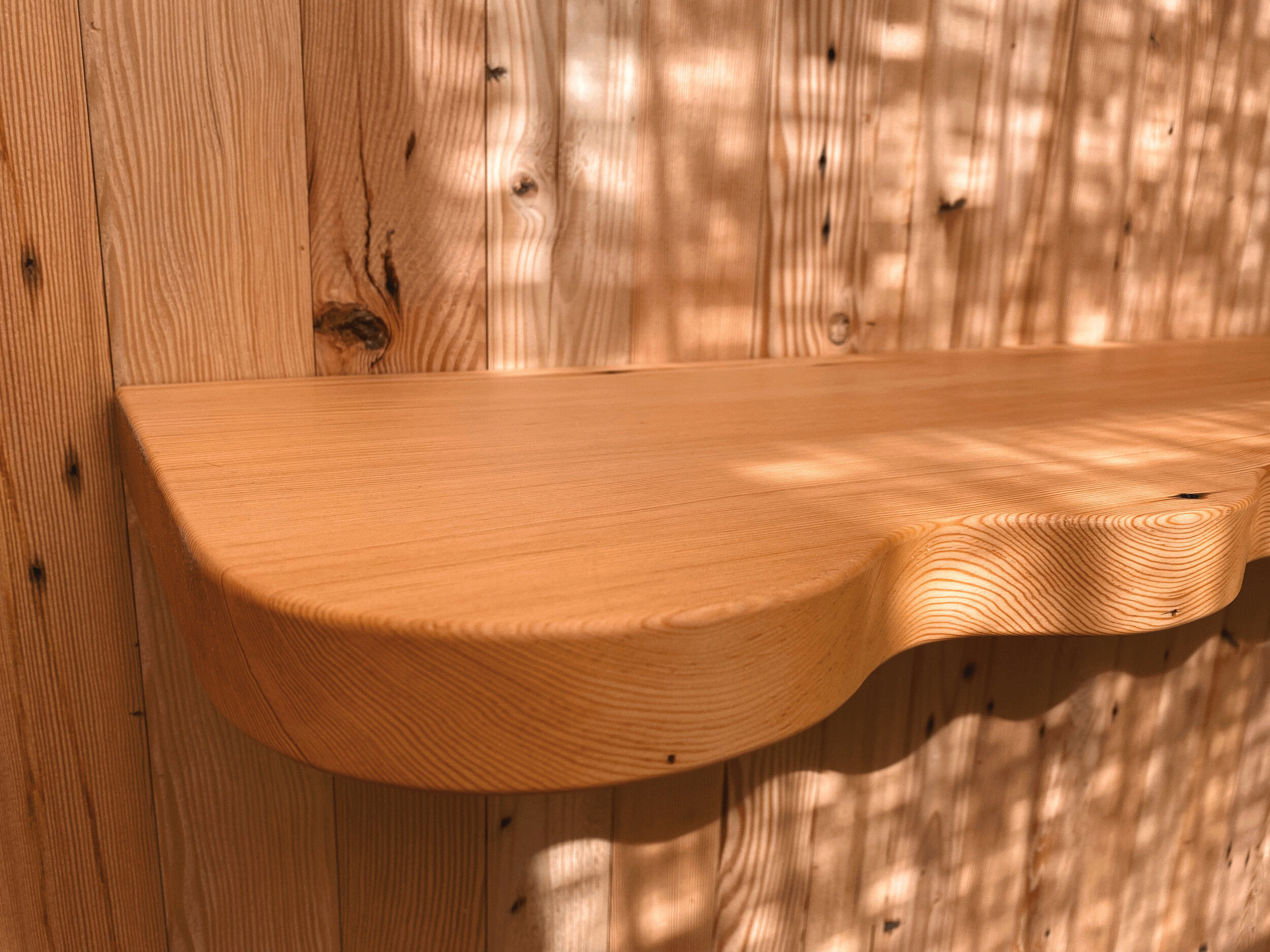 For these products, we first asked ourselves, what do we have? And from there, where can we go? The result is a clutch of shelves and mantels that draw from what was, what is, and what can be. 100-year-old wood, an inherited size, and imagination. Rest your cup on-eth and dream of the world we want, where each object carries with it a humble gesture toward the good.